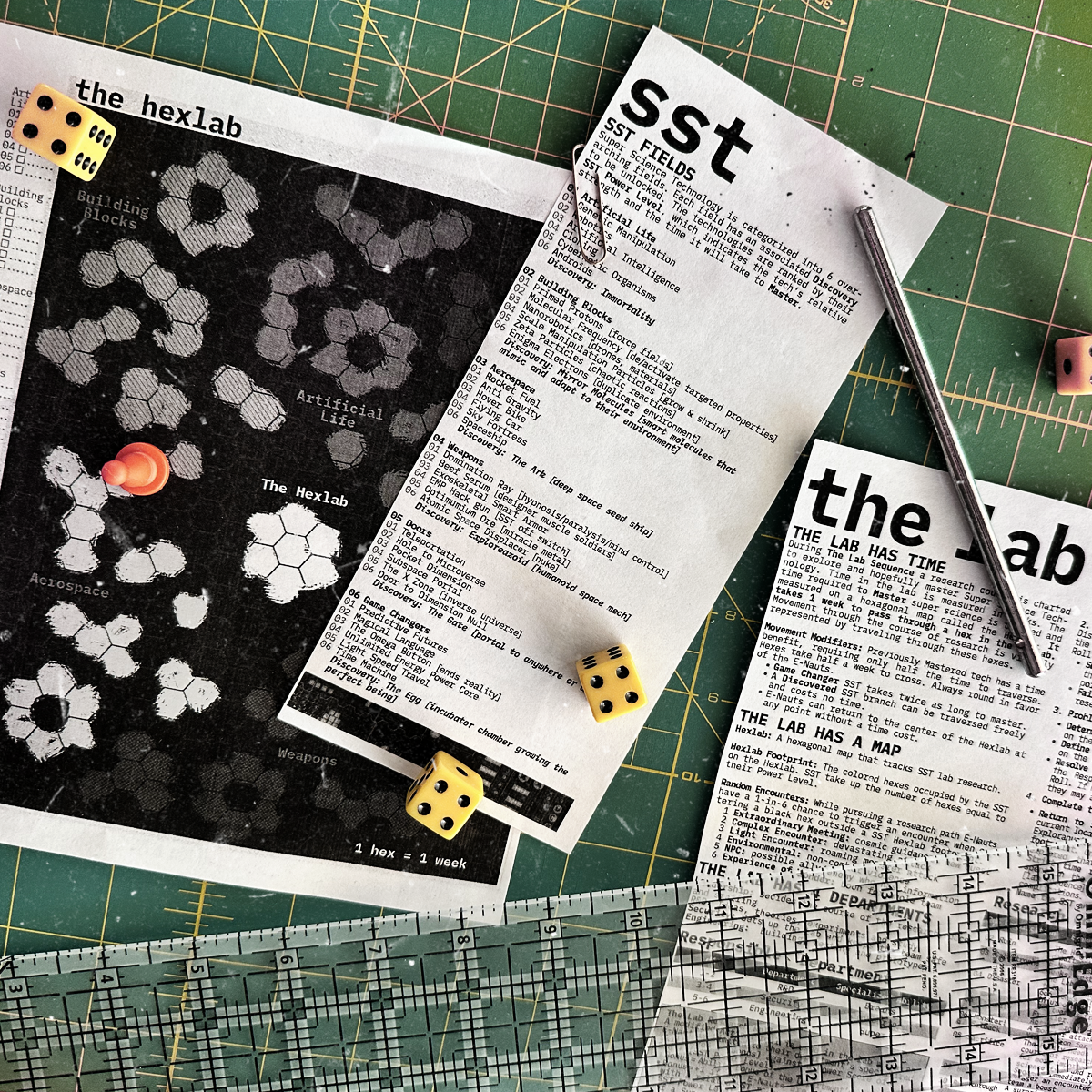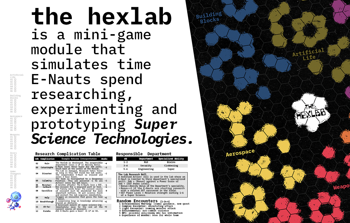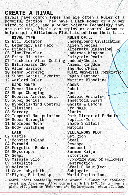 A dozen 2d6 Tables flesh out a sci-fi adventure game world bounding with Rivals in the pursuit of Super Science Technology.